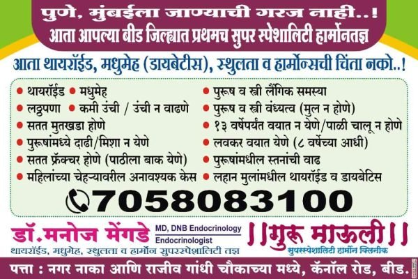 Read Article →Beed's first Super Speciality Hormone Clinic — Expert care for Thyroid, Diabetes, Obesity & Hormonal disorders by Dr. Manoj Mengade (MD, DNB Endocrinology)